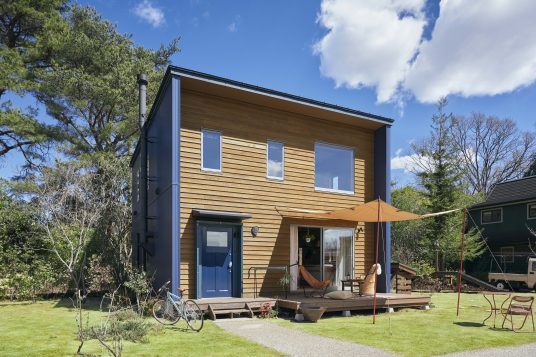 33.9坪タイプドキドキする毎日を生み出す装置(デバイス)。個性を主張する外観と、木の香りに包まれる室内。遊びごころに満ちたこの四角い箱から、自分らしいライフスタイルを想像してください。